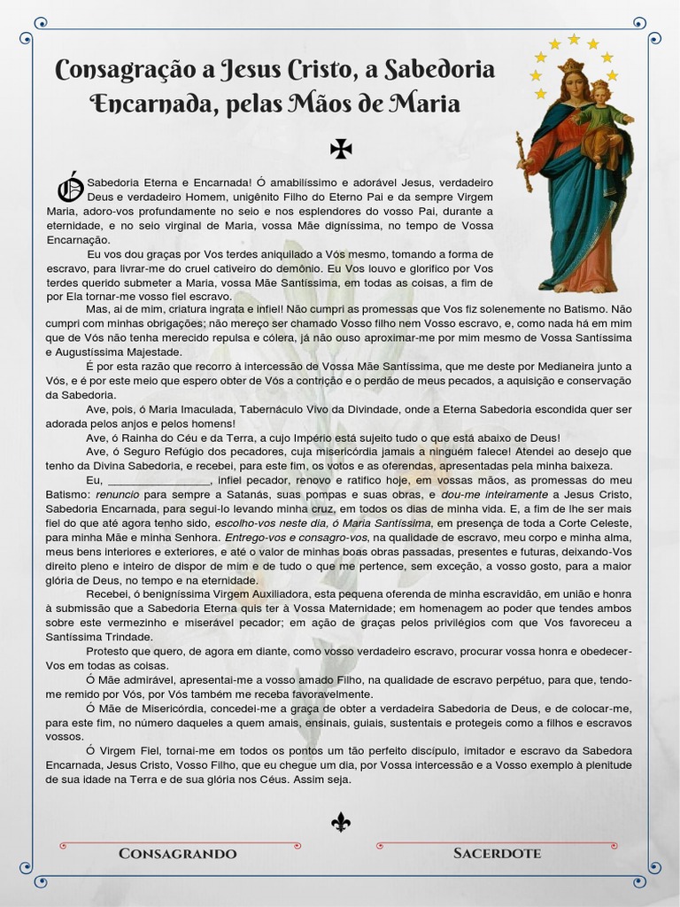 Hoje renovei minha consagração a nossa senhora Carta de Consagração Ó Sabedoria Eterna e