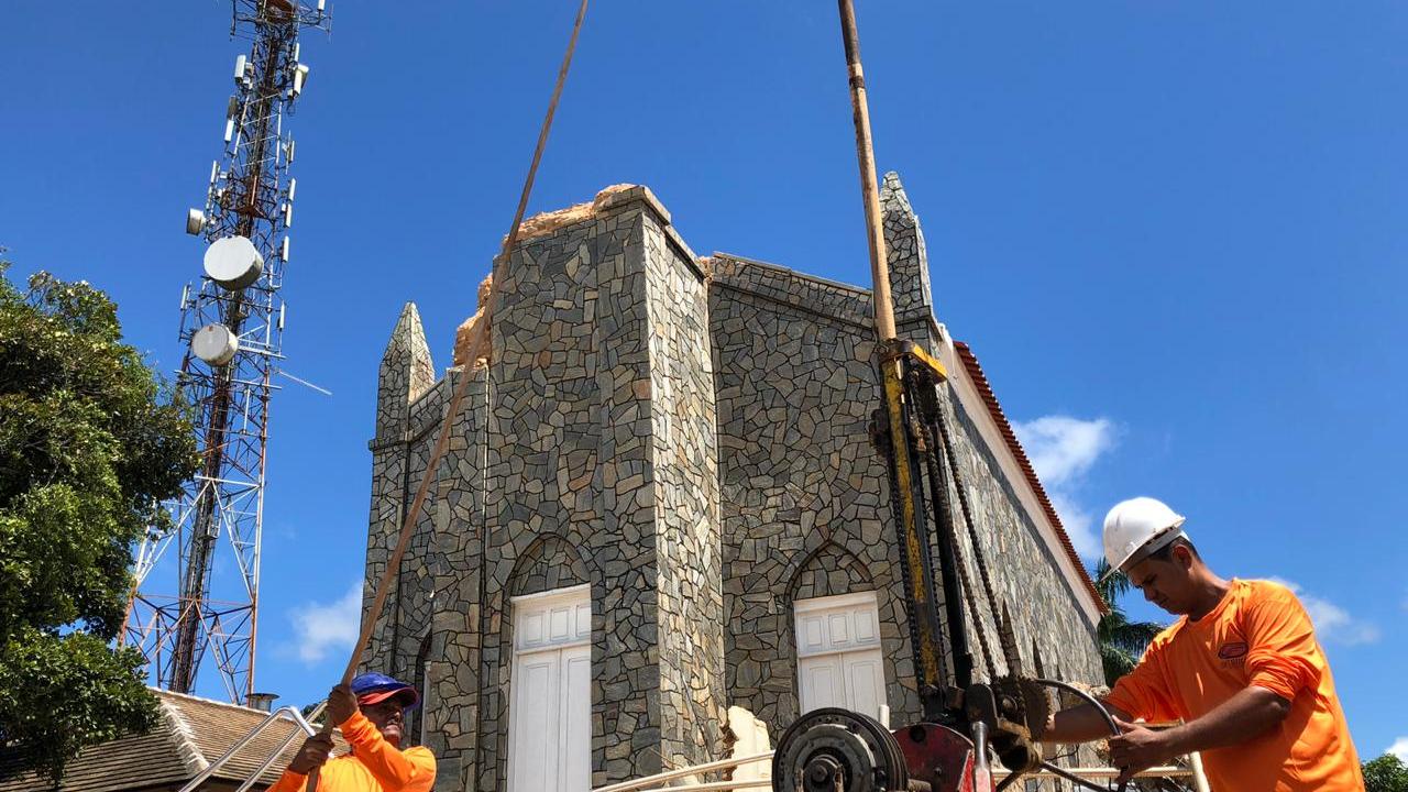Engenheiros e técnicos iniciam plano de reconstrução da Igreja do Céu após desabamento de escultura