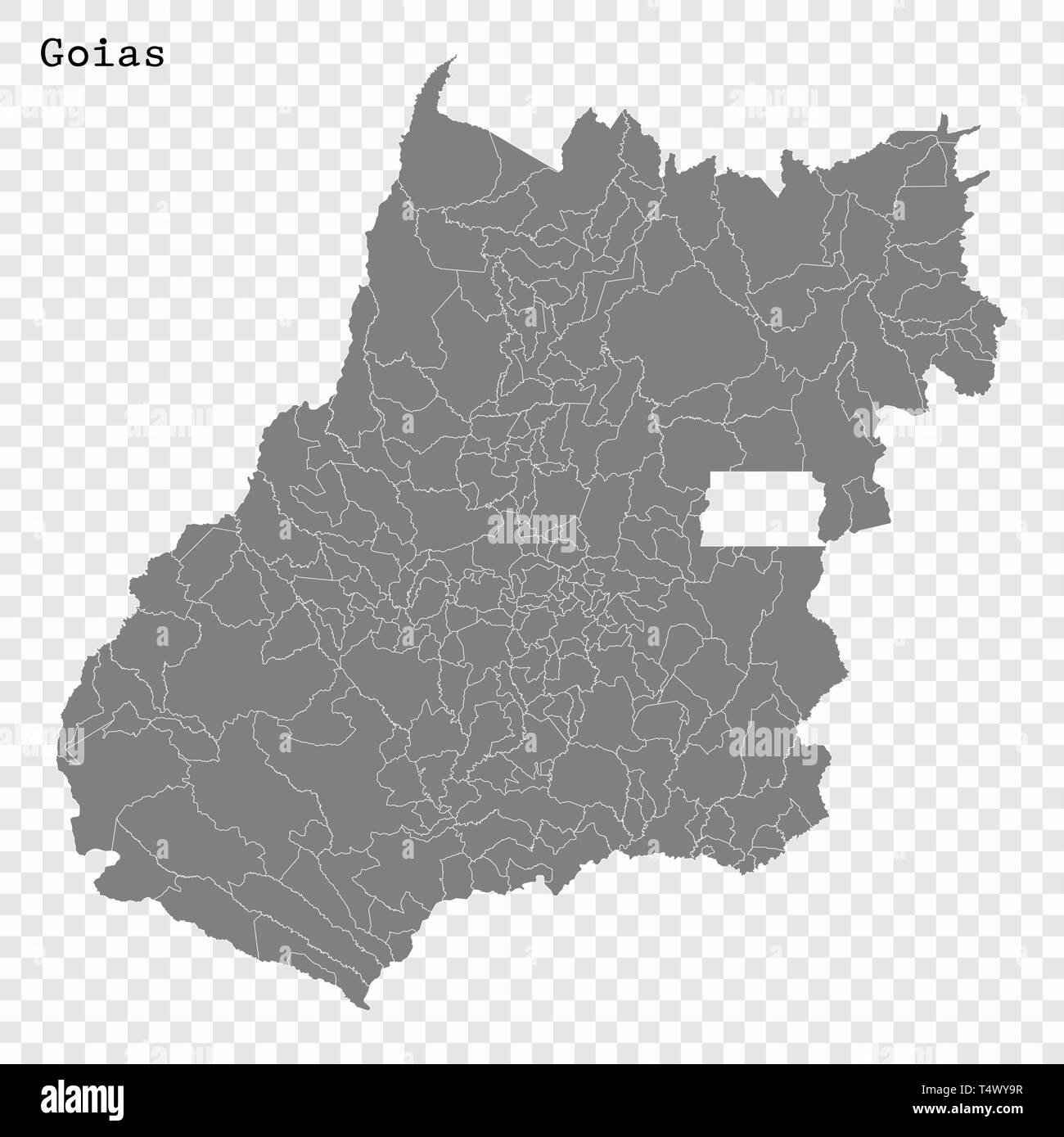 Mapa de alta calidad de Goiás es un estado de Brasil, con los bordes de los municipios Imagen