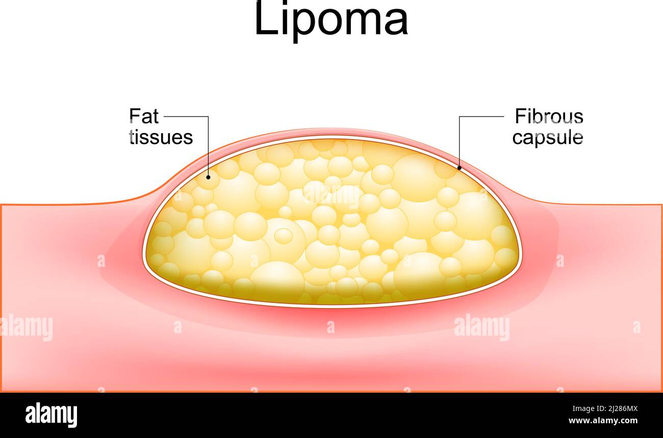 A lipoma is a round or oval-shaped lump of tissue that grows just beneath the skin. It's made of fat, moves easily when you touch it and doesn't usually cause pain. Lipomas can appear anywhere on the body, but they're most common on the back, trunk (torso), arms, shoulders and neck. Lipomas are benign soft tissue tumors.