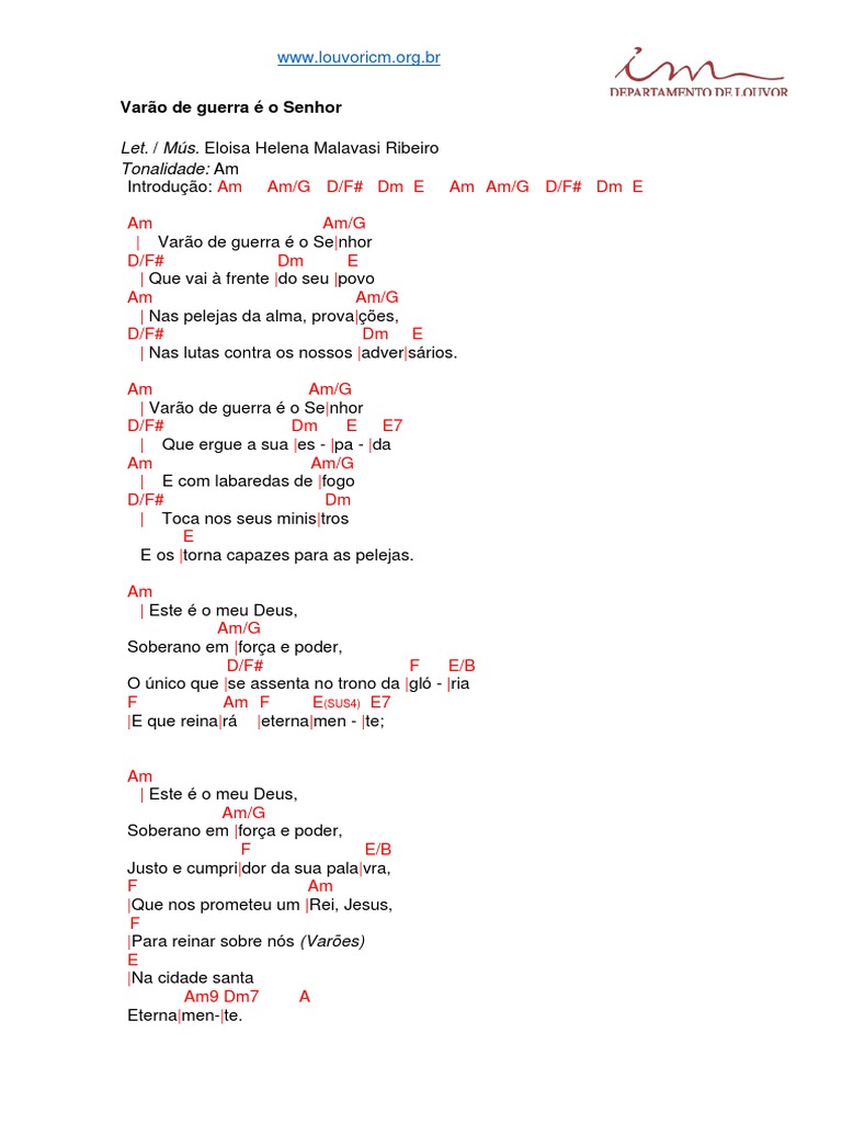 Varão de Guerra É o Senhor Cifra (Site Louvor ICM) PDF