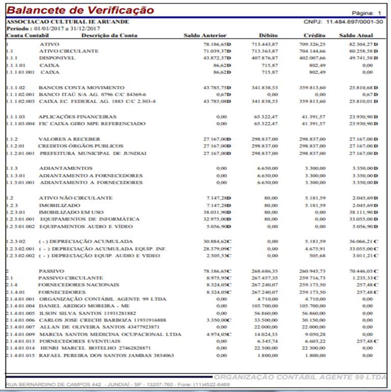Associação Cultural Iê, Aruandê! Balancete de verificação 2017