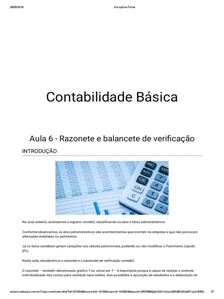 Aula 6 e balancete de verificação.pdf Escrituração contábil Contabilidade