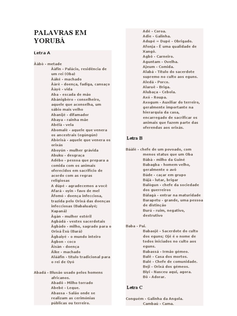 Algumas Palavras Em Yorùbá Com Tradução Para o Português PDF Religião e crença