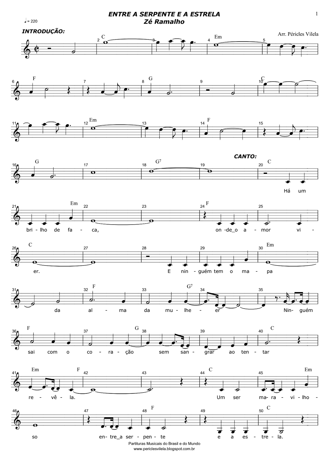 Partituras Musicais Entre a Serpente e a Estrela Zé Ramalho n.º 1717